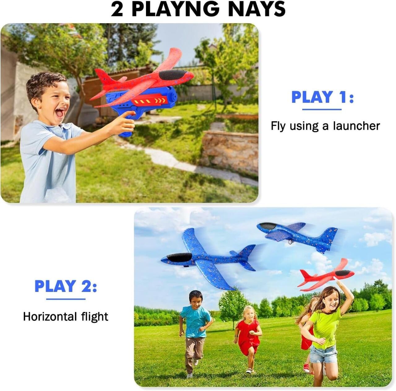 Avión Planeador con Lanzador Juguete Volador de Espuma Ligera y Resistente para Niños y Adultos.