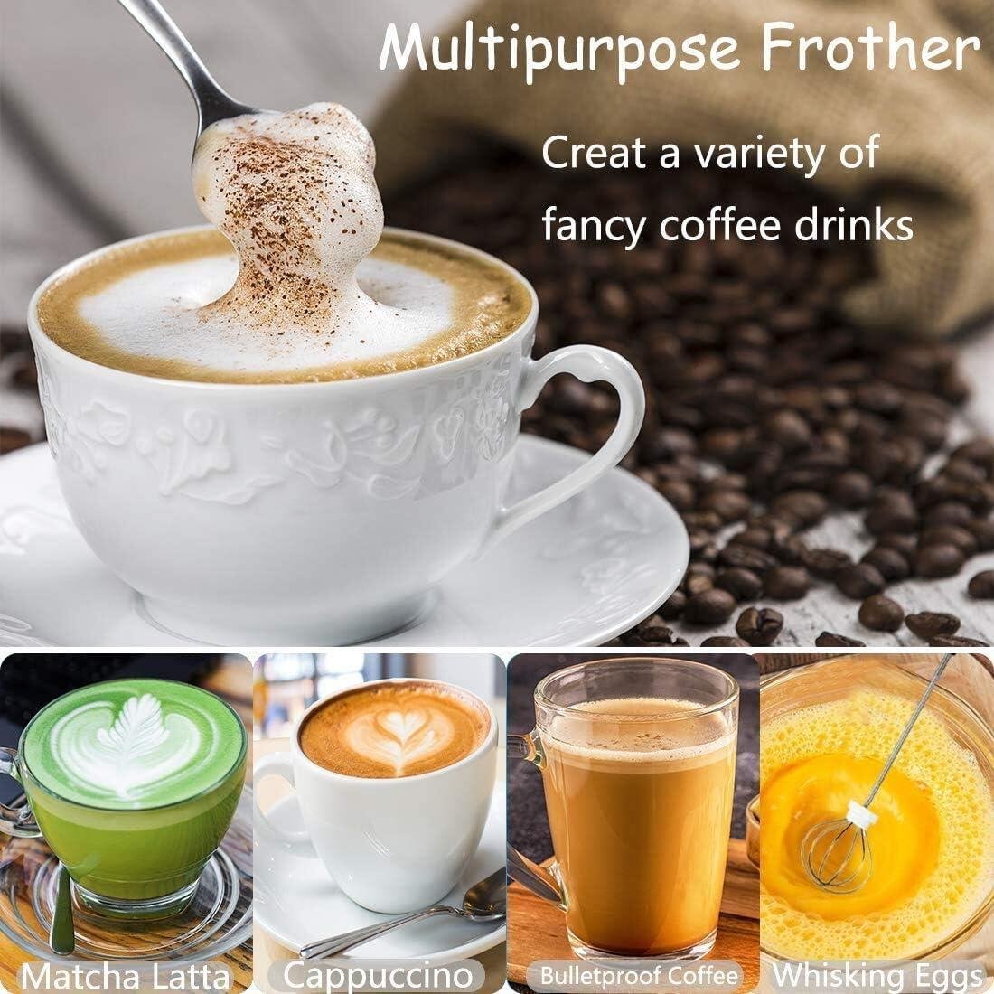 Multifuncional 2 en 1: Tiene 2 cabezales desmontables diferentes. Es una excelente herramienta para hacer batidos, café, café con leche, capuchino y batidores de huevos. Puedes elegir el cabezal batidor de globos para batir el huevo; o elegir el espumador de leche de doble resorte para hacer la espuma de leche perfecta.