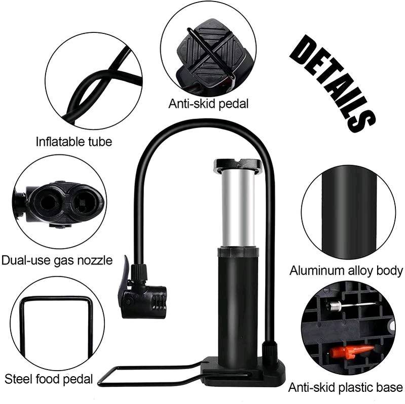 CUERPO DE TUBO AJUSTADO DE ALUMINIO: El inflador de pedal tiene una apariencia hermosa, material liviano, durabilidad y suficiente presión de aire. La boquilla de aire tiene una amplia gama de usos. Un tubo tiene múltiples usos. Es adecuado para portabilidad. Es fácil de transportar y se puede colocar en una bolsa para cámara de bicicleta. Compatible con diversos equipos deportivos como bicicletas, bicicletas de montaña, motocicletas y baloncesto. Su diseño versátil lo convierte en imprescindible.