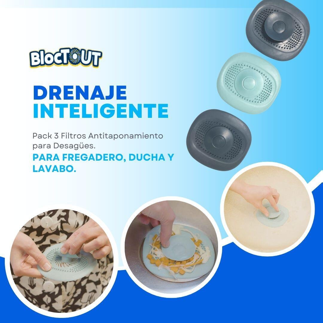 Mantén tu hogar libre de atascos con BLOCTOUT, el sistema inteligente que previene la acumulación de cabello, restos de comida y suciedad en cocinas, baños y duchas. Su diseño flexible en TPR se adapta a cualquier desagüe, permitiendo un flujo de agua constante mientras bloquea los residuos.