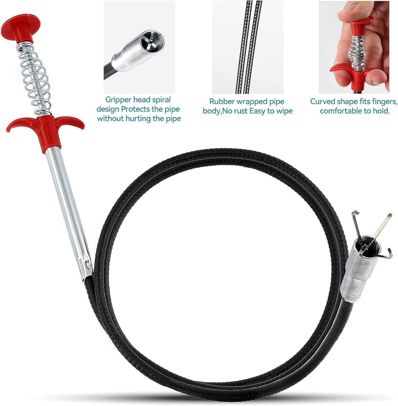 Flexible y retráctil: la herramienta es flexible y cuenta con una garra retráctil, por lo que es fácil llegar incluso profundamente a tus tuberías y desagües para eliminar bloqueos.