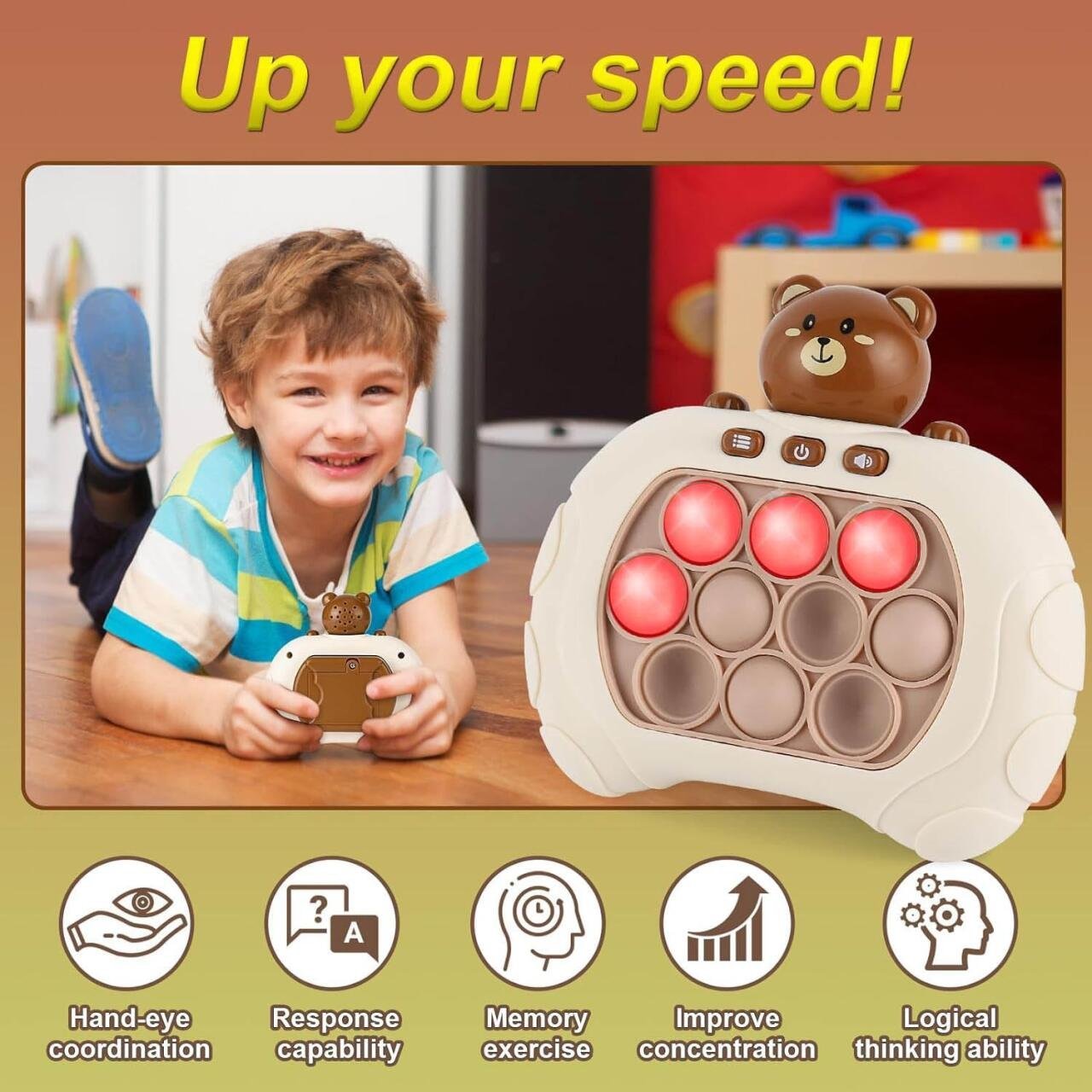 El Juego de Memoria Pop It Up Antiestrés Oso es un divertido y relajante juguete sensorial diseñado para estimular la memoria y aliviar el estrés. Con forma de oso y superficie tipo Pop It, permite presionar burbujas de silicona que generan un efecto táctil y sonoro satisfactorio. Ideal para niños y adultos, ayuda a mejorar la concentración, la coordinación y las habilidades cognitivas de forma entretenida. Fabricado con materiales seguros y resistentes, es perfecto para jugar en casa, la escuela o la oficina.