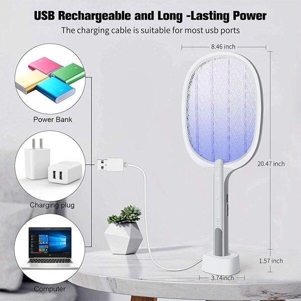 MATAMOSCAS Y LÁMPARA DE MOSQUITOS RECARGABLE 2 EN 1 CON SOPORTE – Producto de alta calidad para tu hogar