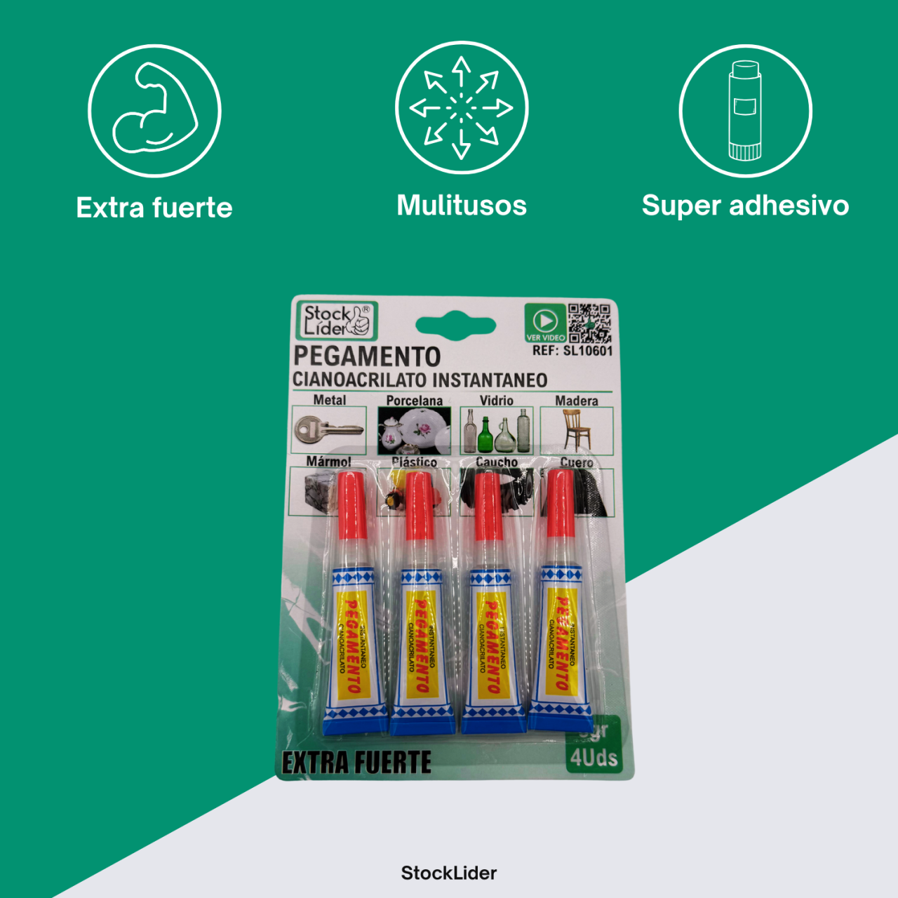 Cada aplicación es sencilla y práctica: basta con limpiar la superficie, aplicar una gota y ejercer presión unos segundos para conseguir una unión firme y resistente. Viene en un práctico formato de 4 tubos de 3 gramos cada uno, lo que te permite aprovecharlo mejor, evitando desperdicios y manteniendo siempre a mano una unidad lista para usar.
